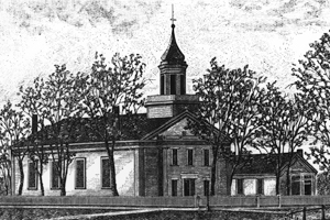 1842-1843Enrollment (1842): 15 in the College, 160 in the Academy President Kellogg travels to the World Anti-Slavery Convention in London to secure donations and books for the College. On a similar trip, agents from Oberlin College manage to bring back $30,000. Kellogg's trip would not be as successful, however, and he brings back only $1,000 and $500 worth of books. The convention proves to be important because Kellogg meets noted abolitionist Jonathan Blanchard there, who would later become the second President of Knox College. In the early months of 1843, the Seminary burns to the ground, crippling the College. Classes have to be held in the attic of the academy and the board of trustees does not meet for 18 months. Gale goes East in the spring and brought back $800 in assets and 1,600 volumes of books. The loss of the Seminary building leads to the later construction of two more campus buildings, known as "East Bricks" and "West Bricks." |