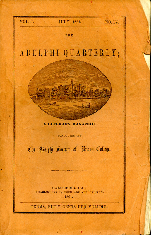 "Most of the men went to the War, leaving only five to complete the course. Ten girls did their best by stepping into the vacant places, and men and women recited together in College and Seminary for the first time." The Ladies' Moral Improvement Society is founded in 1861 to provide women with the opportunity to develop their oratorical skills. LMI, as it was clandestinely referred to, was very comparable to the men's Gnothautii and Adelphi literary societies and would play a role in the debate over the separation of men and women's courses that culminated in President Curtis's resignation and subsequent coeducation at Knox college. |