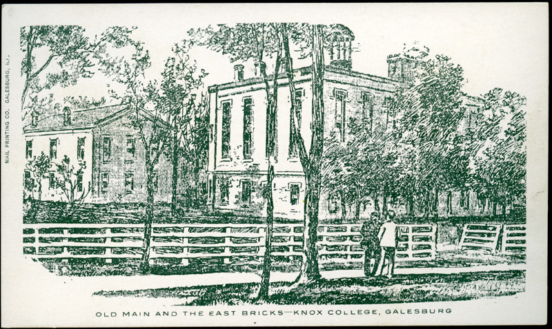 Enrollment: 55 in the College, 253 in the Academy, 40 in the Female Collegiate Dept. Galesburg wins the competition with Knoxville over the location of the new Chicago, Burlington, and Quincy Railroad line, which becomes the first railroad to pass through the town. Local businessman Chauncy Colton is influential in the effort. Because of the railroad, within one year Galesburg's population quadruples. |