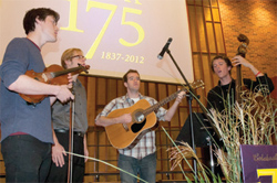 Sandburg's ode lingered with Amott as she continued through the fall, looking for ways to celebrate Knox's 175th anniversary. A Homecoming ballad was commissioned, and the singer-songwriter Samuel Brownson '12 was given the speech to read. While the song, "On the Steps of Old Main," is not directly about the speech, Brownson explains that Sandburg's themes and his discussion of Old Main were inspirational springboards for the song, but the folk ballad itself became more "personal and nostalgic."