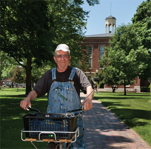 Bacon and his wife, Sheryl, live in Galesburg, and he often commutes to class on his bicycle. He has a parttime job at the Sears store, family in town, and tinkers with bikes. What students find lively-the spontaneity of campus life-Bacon often finds frustrating. "Students don't plan things the way I do," he said. "They say things like ‘We're doing it later today,' or, ‘We're doing it tonight.' When I do something, I gotta know in advance. I've got a wife at home, and before I make plans, I have to ask first."