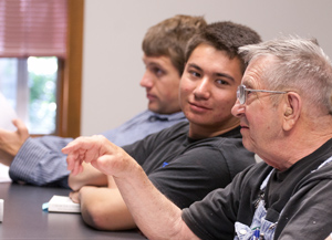 Prior to college, discussion was not a big part of Bacon's work day. "In the factory, you go into the shop, and you get your tools out. The foreman might come in and give you the plans, and then he walks away." Now, everything is open for questions, and Bacon is not afraid to speak out. "I don't always agree with what's in the book. I don't always agree with what the professors say. If it's in my lifetime, I've got 80 years of experience. In some history classes, what they're reading in books, I've lived."