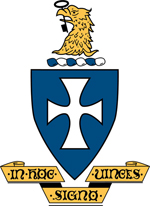 Sigma Chi (ΣΧ) is one of the largest and oldest all-male, college, Greek-letter social fraternities. Sigma Chi was founded on June 28, 1855 at Miami University in Oxford, Ohio when members split from Delta Kappa Epsilon. The fraternity's official colors are blue and old gold, and its badge is a white cross with emblems on each of its arms: crossed keys on the upper arm, an eagle's head on the right arm, seven gold stars and a pair of clasped hands on the lower arm, and a scroll on the left arm. In the center of the cross, on a black background, are the gold symbols for the Greek letters Sigma (Σ) and Chi (Χ). The left and right arms are connected to the upper arm by gold chains.