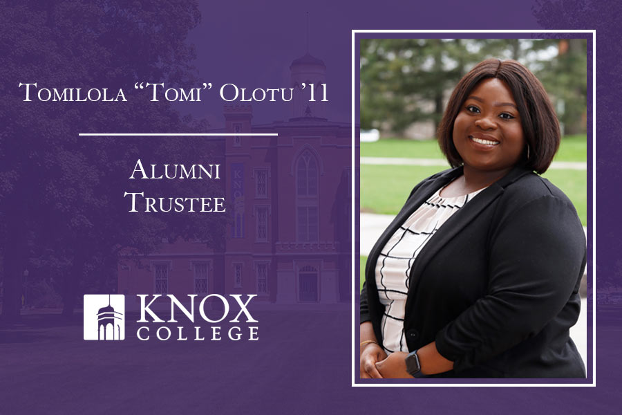 In her role as an Alumni Trustee, Tomi will work closely with the Board of Trustees to contribute to the strategic direction of Knox College, keeping us at the forefront of higher education and driving us to maintain our status as a global institution.