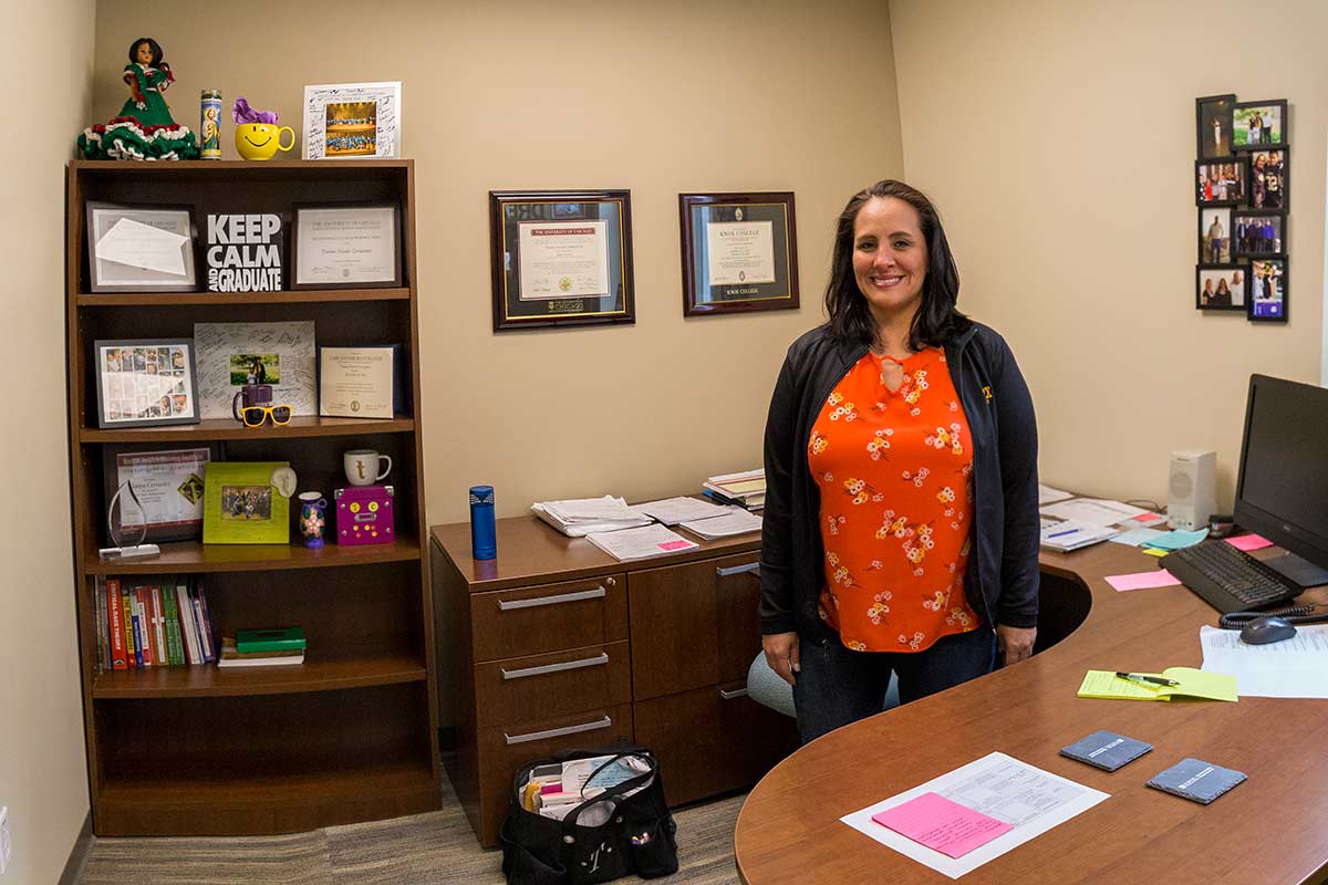 Cervantez serves as a mentor, sounding board, advocate, and advisor for students navigating the myriad challenges of college life, from homesickness to feeling overwhelmed by the workload, from worrying about finances to wondering where they fit in within the larger Knox community. As a former Knox student, she can identify. “Probably the hardest part of taking this position was getting used to that shift of perspective. For a while, I felt like I really had to prove myself.”
