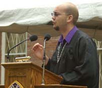 Senior Class Speaker Dan Lieberman at Knox on June 4, 2005, with the commencement speaker, Barack Obama, seated behind him on stage: