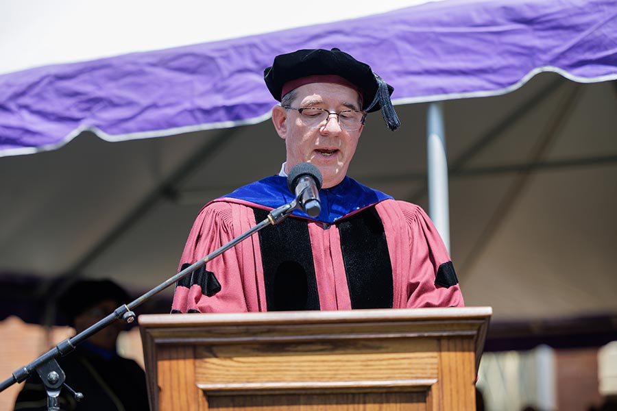 After the students were presented for degrees by Provost and Dean of the College Michael A. Schneider, President McGadney awarded degrees to the new graduates on behalf of the Board of Trustees. Those assembled expressed their pride, jubilation, and all-out relief with applause, cheers, and yells signaling the end of one journey and the beginning of the next.